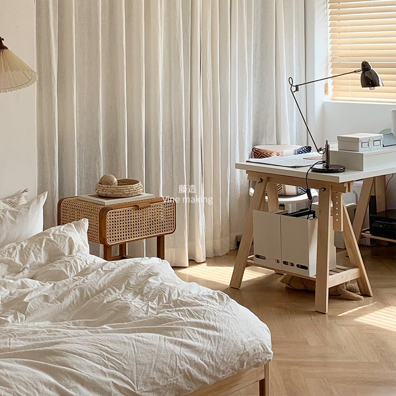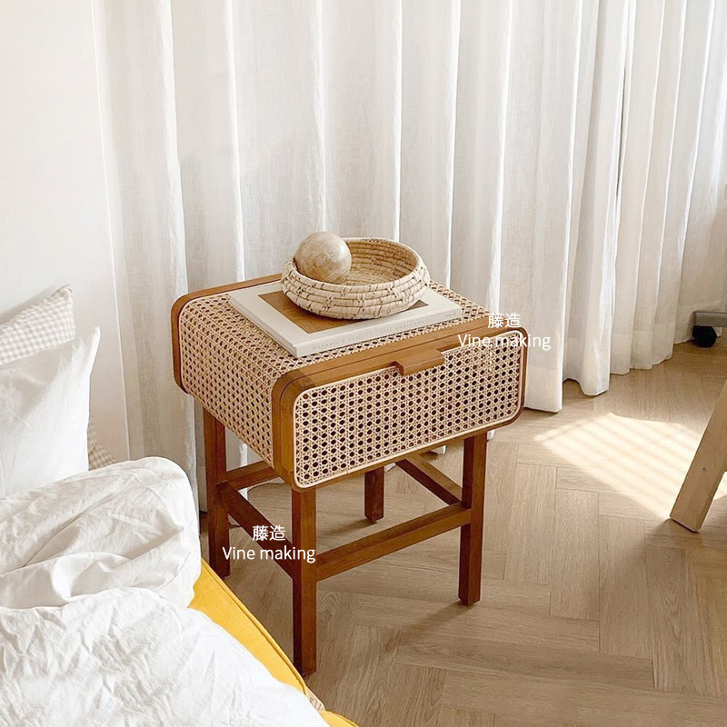 South Korea ins real Vine solid wood bedside table Fujiao handmade bedside table new Chinese coffee table simple retro small cabinet