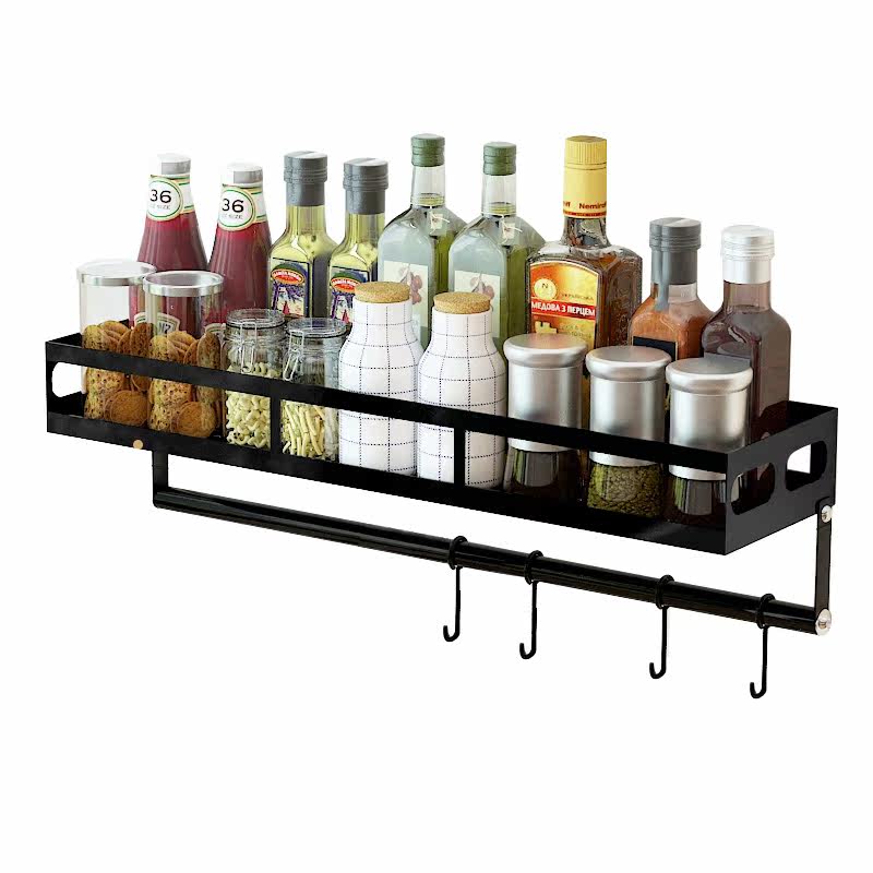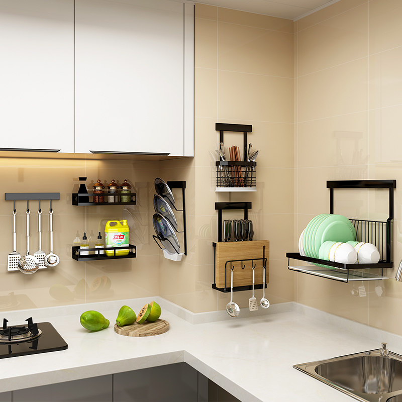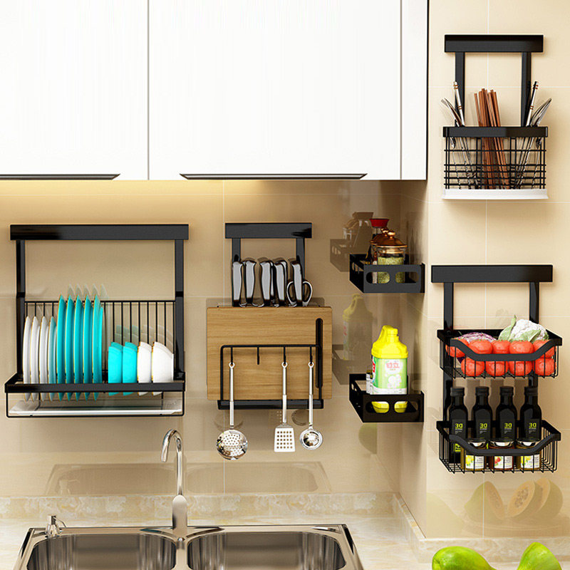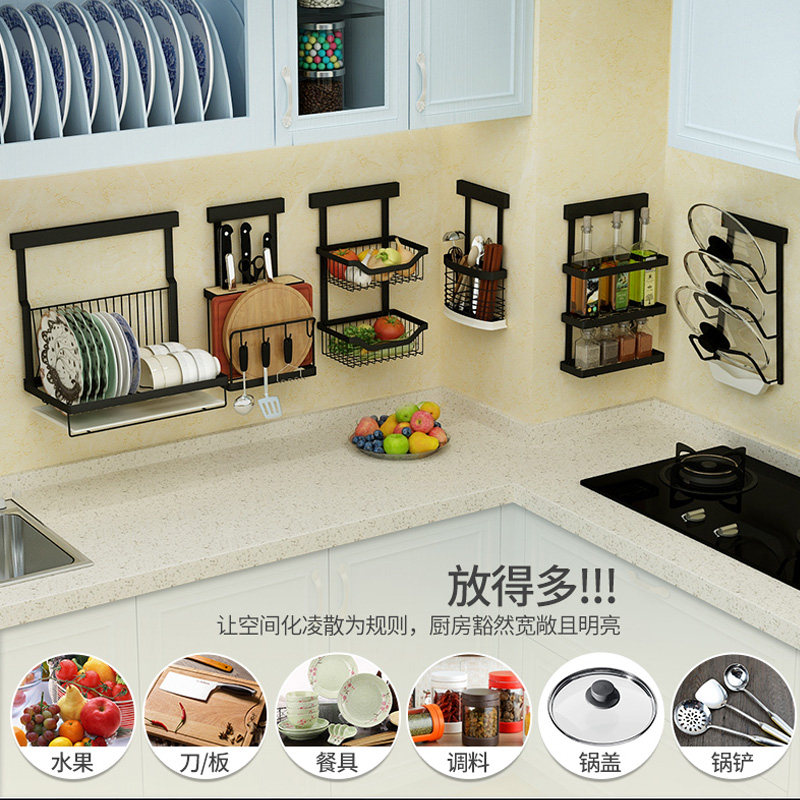 Free Punching Stainless Steel Condiment Shelve Shelve Kitchen Wall-mounted Bowl Rack Putting Tool Holder Chopping and Seasoning Jar Rack Hanging Wall Rack
