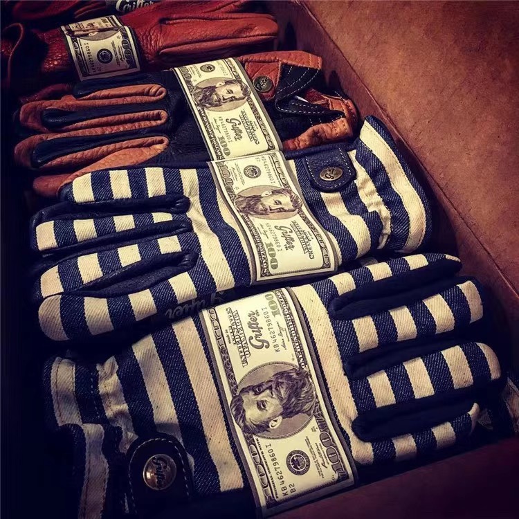StrongCustomStudio American Grifter Denim and Deerskin Vintage Prisoner Striped Gloves - Taobao