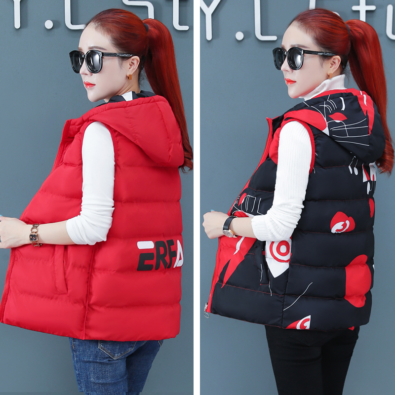 Double sided wearing cotton waistcoat female short section 2022 Winter new Korean version easy to warm 100 hitch waistcoat Waistcoat Tide