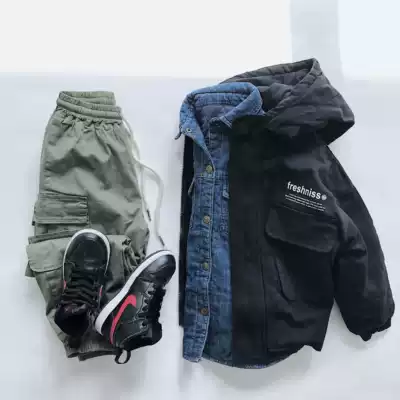 (Recommended by the owner) Boy's winter cotton denim shirt tide boy BI prepare a single item who wears who is handsome