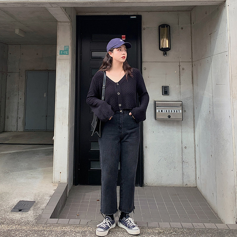 Large-size fat pants loose and fat mm jeans summer pear shaped body obese sister black straight tube tide