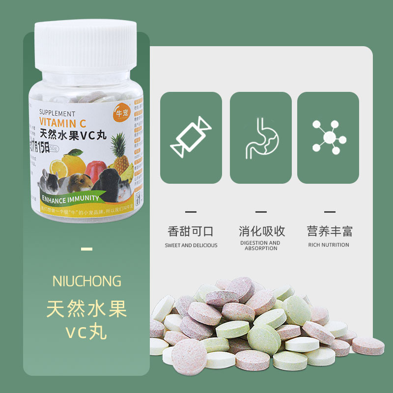 Bull Pet Fruit VC Pill Supplement Vitamin C Bottled Hormone Dutch Pig Pig Rabbit for Use