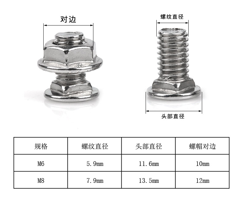 M6*16 304 (including flange nut) M6*20 304 (including flange nut) M8*12 304 (including flange nut) M8*16