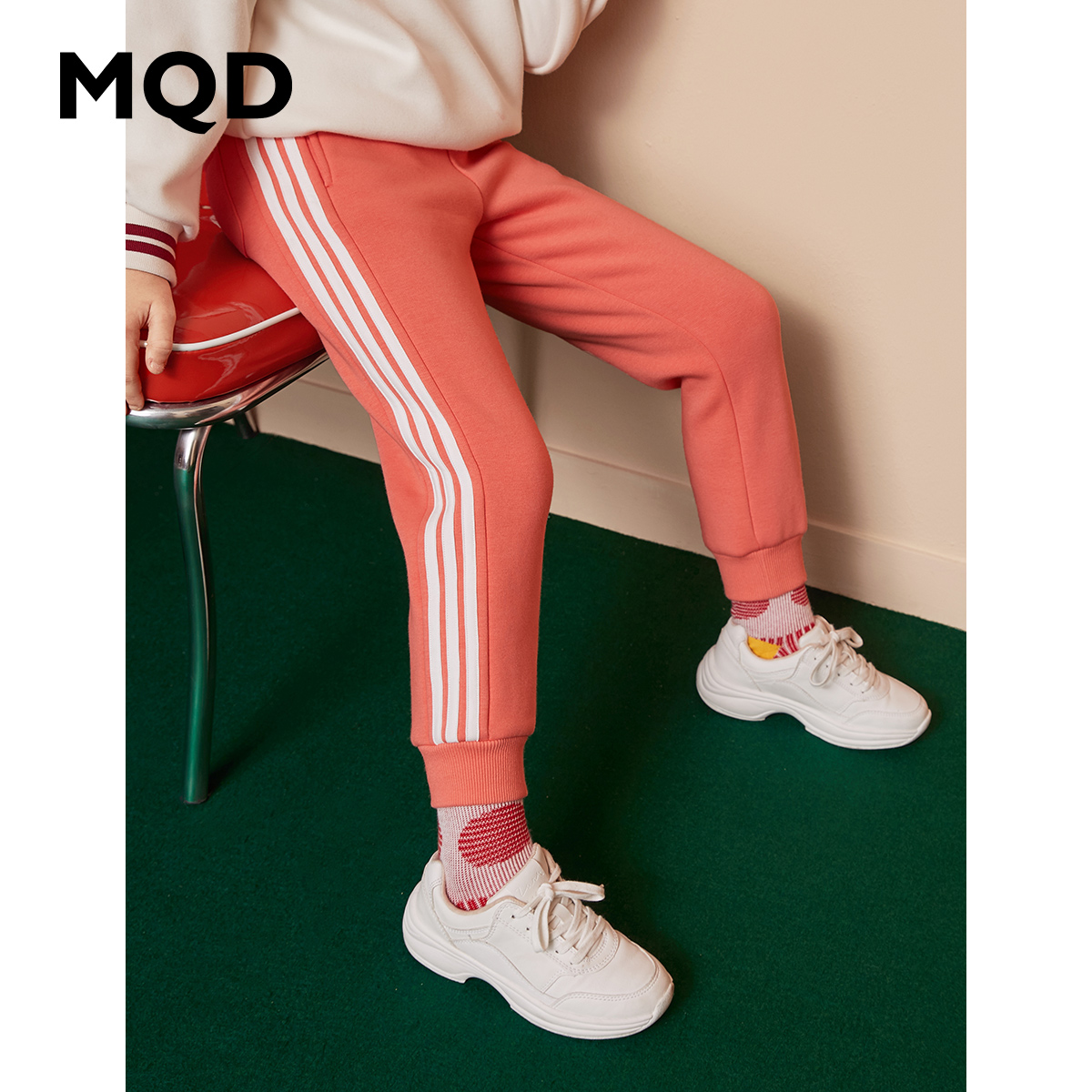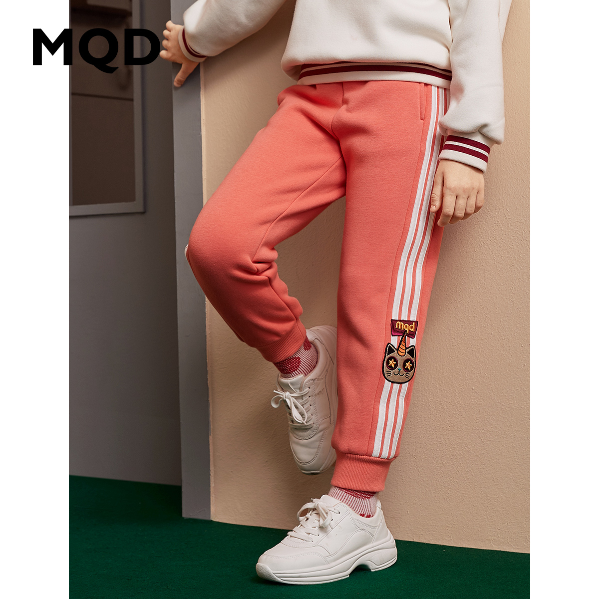 MQD Children Dress Plus Suede Thickened Girl Knit Sports Pants 2021 Winter Children Warm Striped Casual Bungling Pants