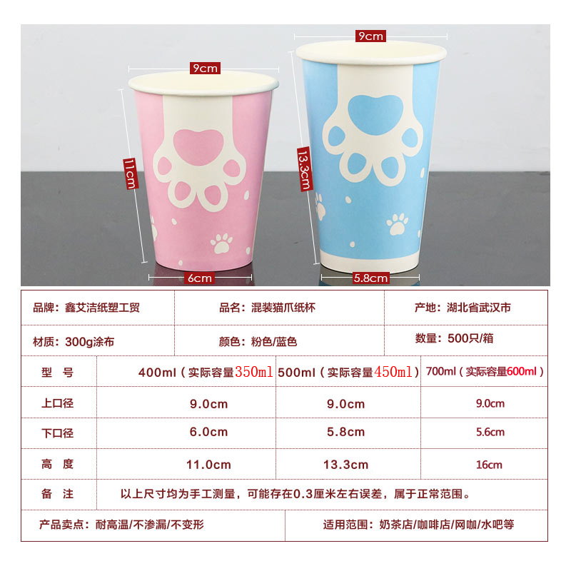 Disposable Nets Red Cat Paws Milk Tea Cupcakes Thickened Cute Pink Blue Cartoon Coffee Hot Drinks Soy Milk Cups