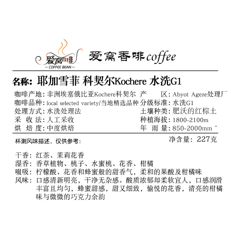African Ethiopia Yirgacheffe boutique Kocher G1 washed single-product hand-washed new green beans freshly baked