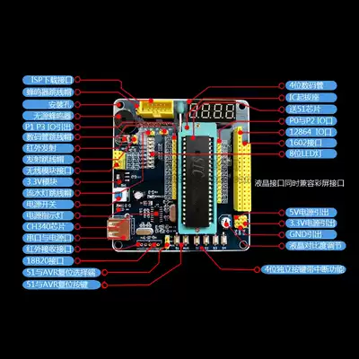 51 development board Single chip kit Development board Learning board Small single chip AVR development board module Send LCD