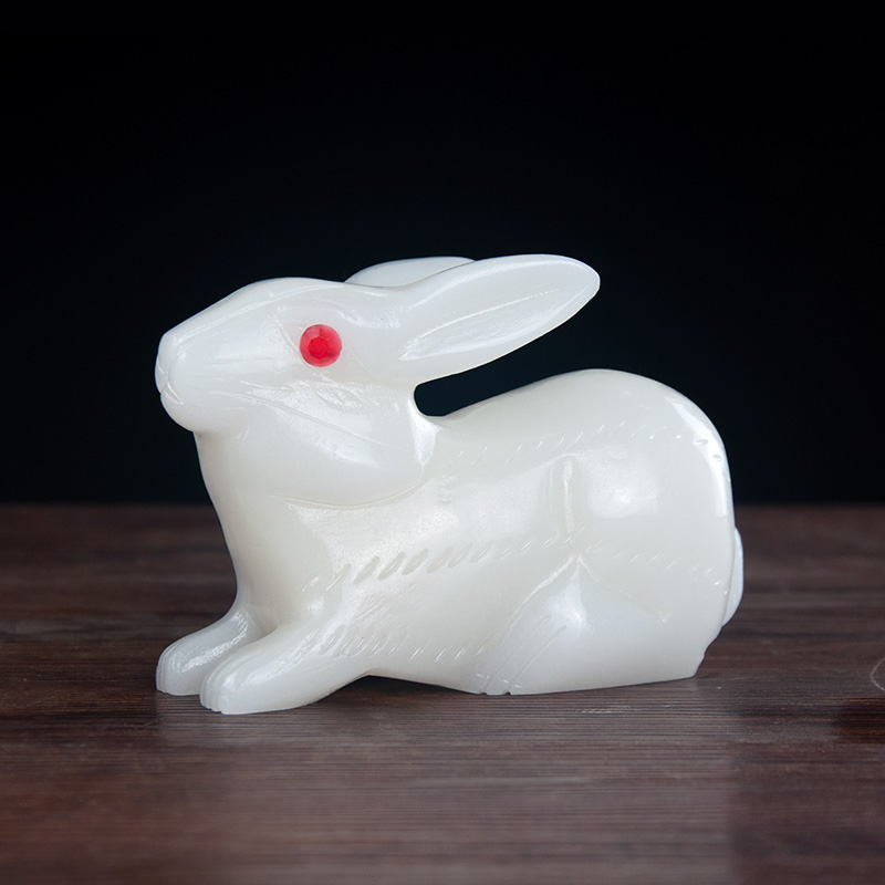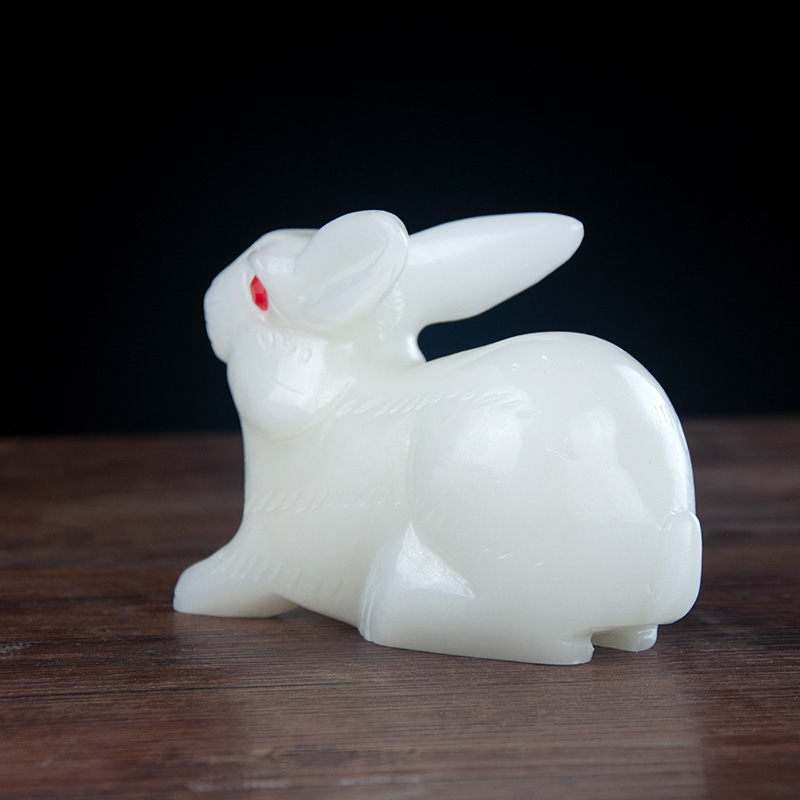 Natural jade rabbit furnished rabbit rabbit rabbit annually decorated Xuankou wine cabinet home furnishings