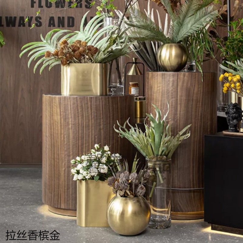 Stainless steel vase table surface metal flower pot small florist oval flower pot minimalist