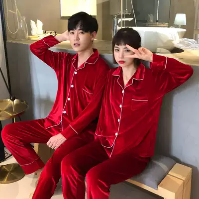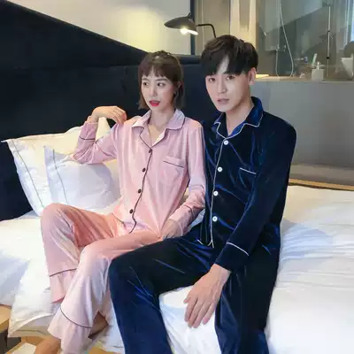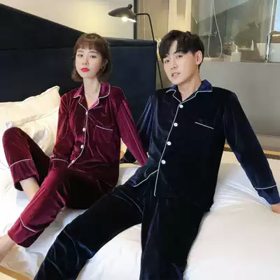 Couple pajamas Women's autumn and winter gold velvet Korean version of women's suit pajamas men's spring and autumn plus size home clothes thin section