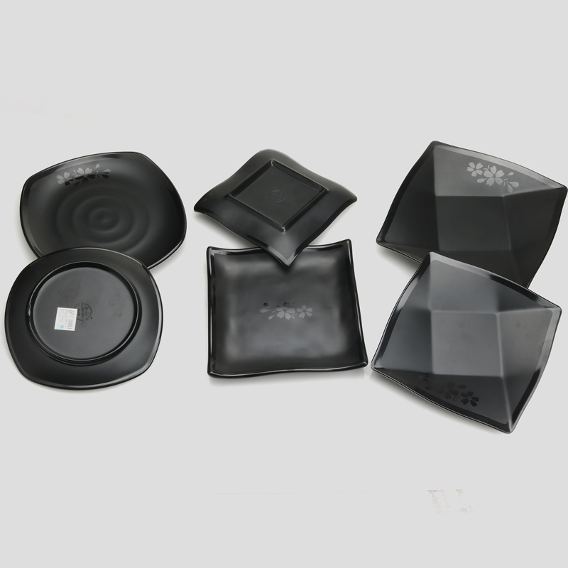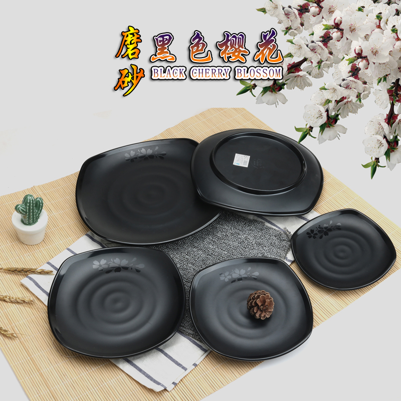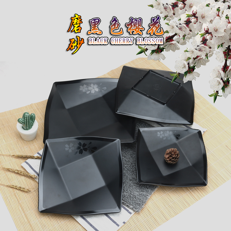 Black Cherry Blossom Frosted Melamine Imitation Porcelain Cutlery Quadrilateral Disc Self-service Plate Creative Day Style Sushi Pan Dishes Dish