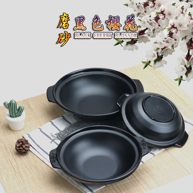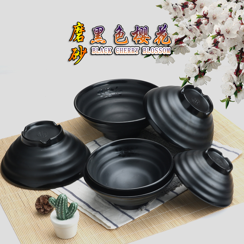 Black cherry blossom mixed porcelain bright-edged fried printed tableware personality large bowl of spicy pot bowl