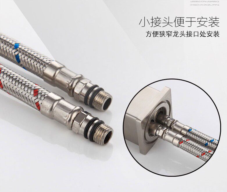 304 stainless steel wire braided explosion-proof tube washbasin sink hot and cold water faucet single head tip inlet hose 4 points