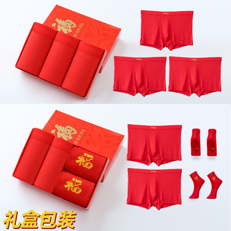 This life year men's flat corner pants fattening pants red medium-high waist Modale 200 catty extra-size fatter 4-corner pants
