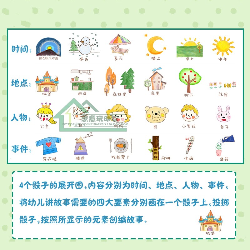 Kindergarten small, medium and large classes language area corner children dice storytelling put in puzzle early education play teaching aids