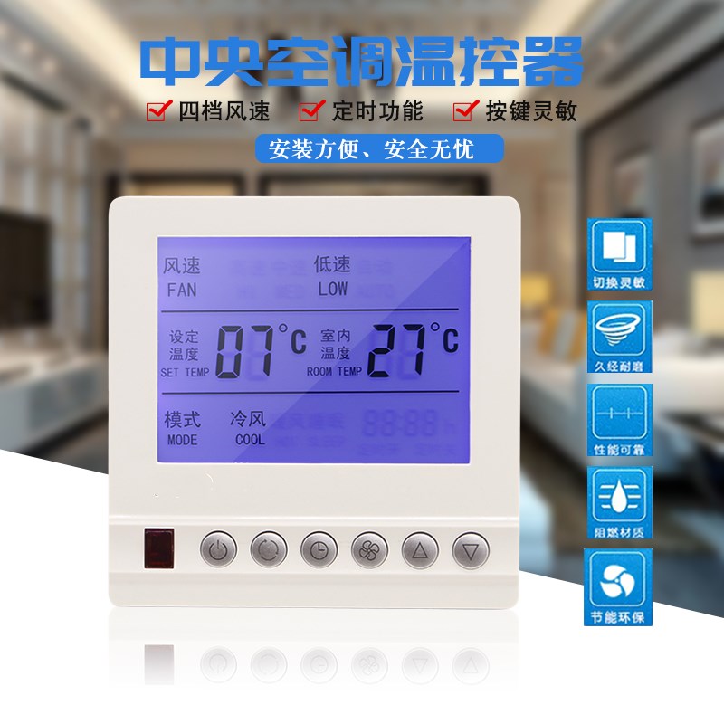 Central air conditioning thermostat water-cooled air conditioning cooling and heating system ventilator coil LCD controller remote control three-speed switch