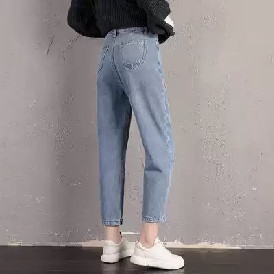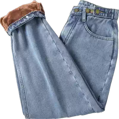 Plus velvet pants women loose winter thin nine points Super fire cec pants straight wide legs high waist denim pants
