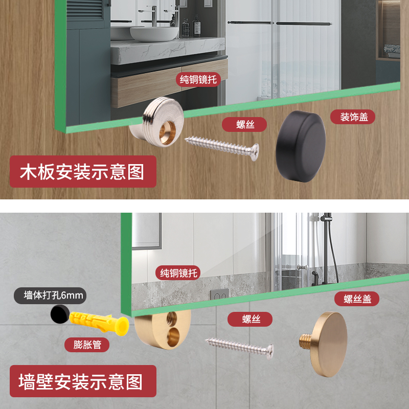 Copper glass mirror fixing clamp wall glass accessory snap wardrobe mirror nail advertising nail mirror fixing bracket