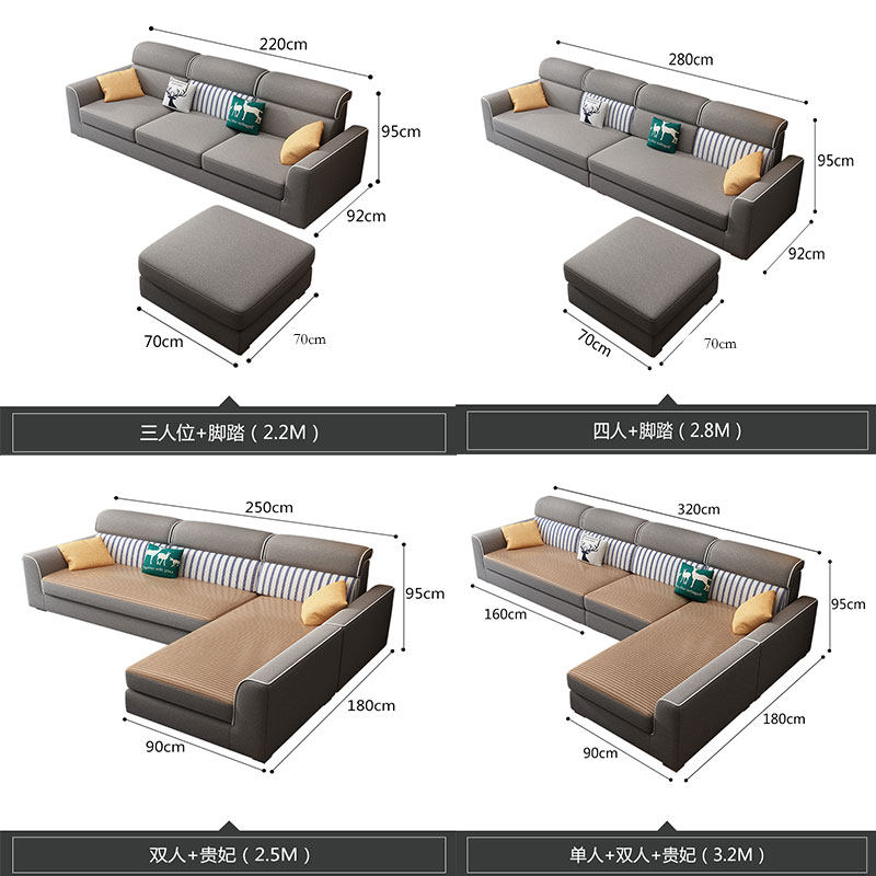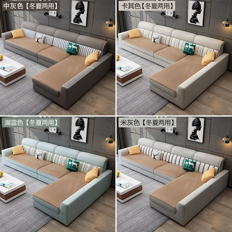 Fabric sofa modern minimalist small apartment technology cloth Nordic latex winter and summer dual-use sofa living room chaise longue combination