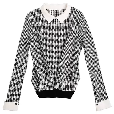 Japanese women's elegant temperament Contrast color small pointed collar retro chigzag knitwear pullover sweater autumn