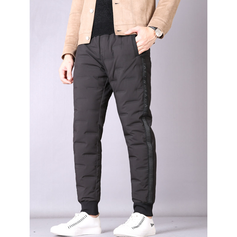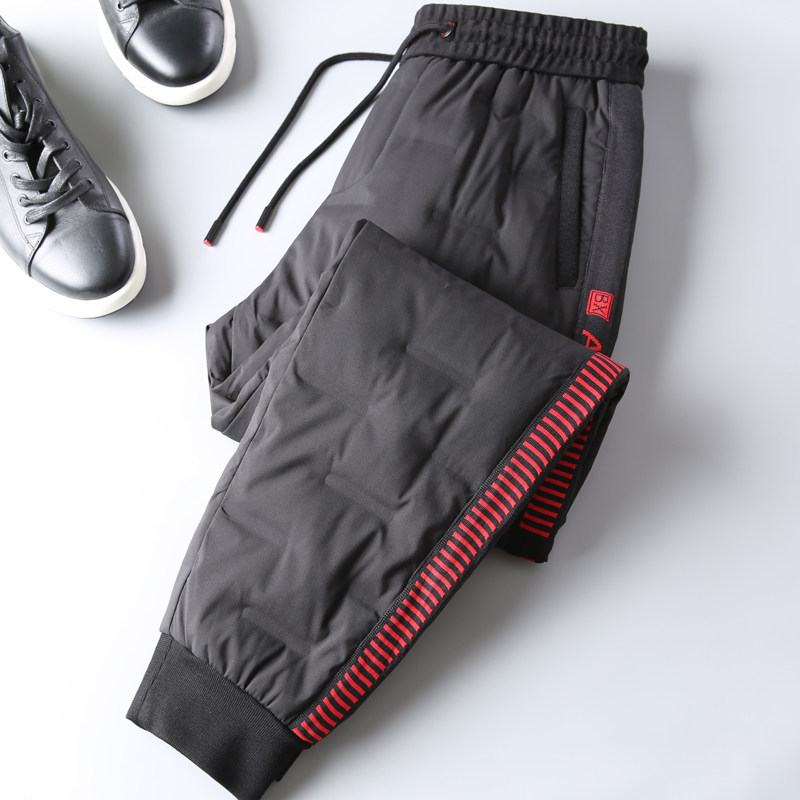 Winter warm and warm high-end pressed rubber straight flush down to the northeast Outdoor waterproof small foot down pants male outwear
