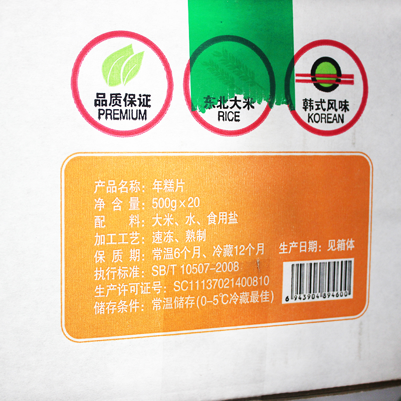 Young man's rice cake 500g * 20 sacks of Han style spicy fried rice rice rice rice rice rice cake and hot pot rice cake vacuum packing
