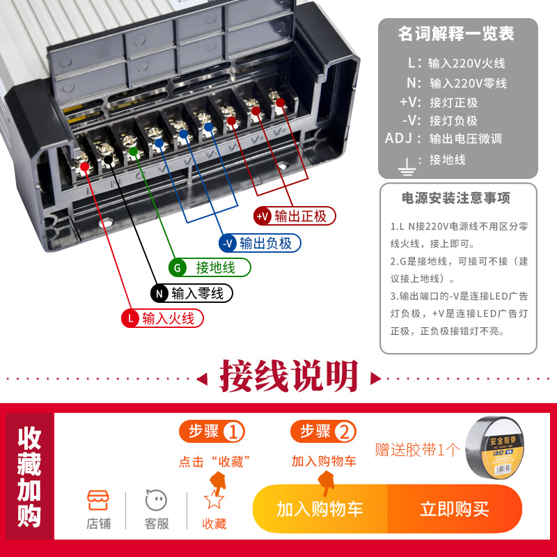 Led rain-proof switching power supply 400w12v220 turn 24v volt DC light box advertisement luminous character waterproof transformer