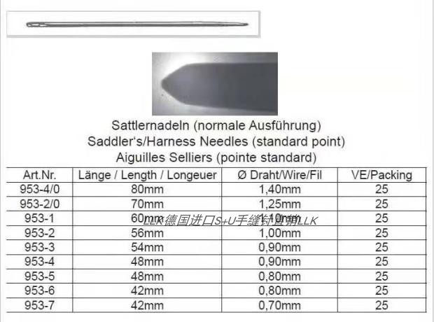 Germany imports SYSTEM S U leather hand sewing needles handmade leather sewing thread pill needle mark line unit price is 25 pieces