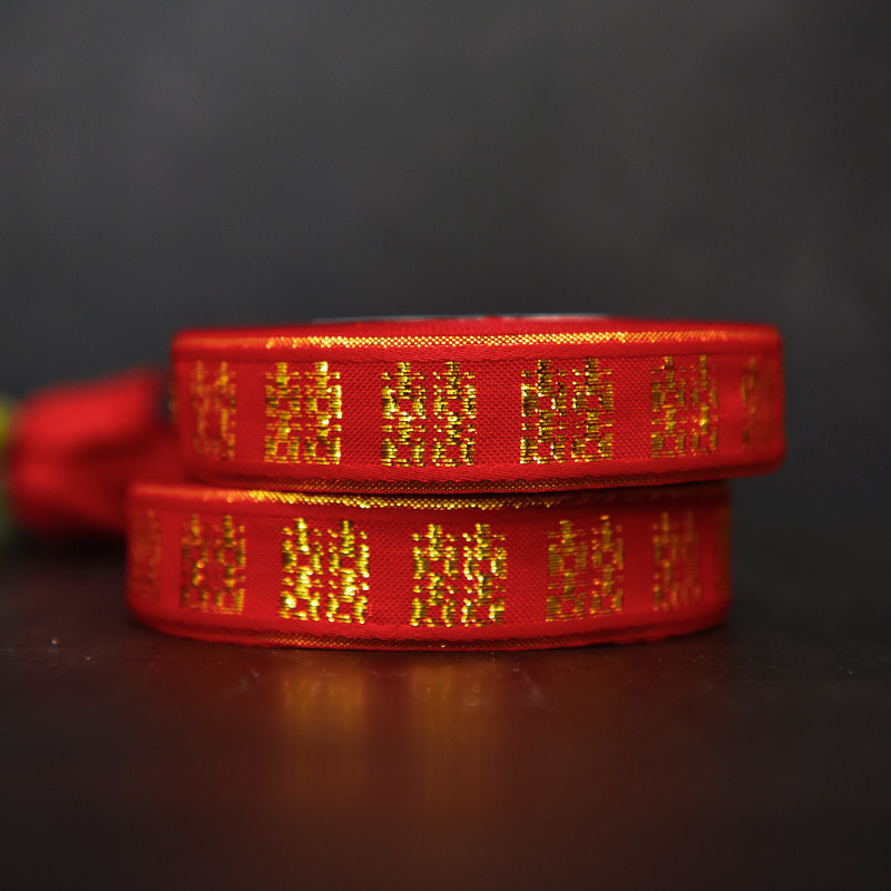 Wedding supplies Bride dowry bundle quilt Red embroidery happy word ribbon ribbon Red rope Wedding supplies