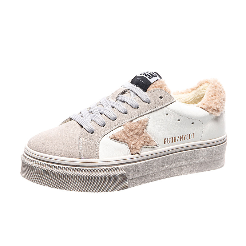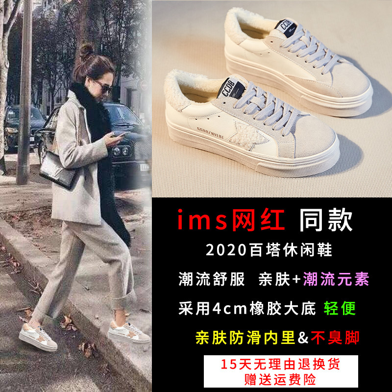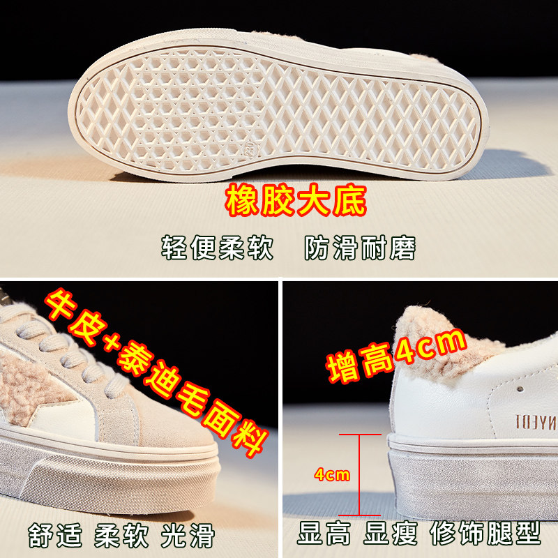 Plush shoes for women to wear outside in 2022 winter new sponge cake thick bottom to increase the height and velvet small white shoes cotton shoes Doudou dad