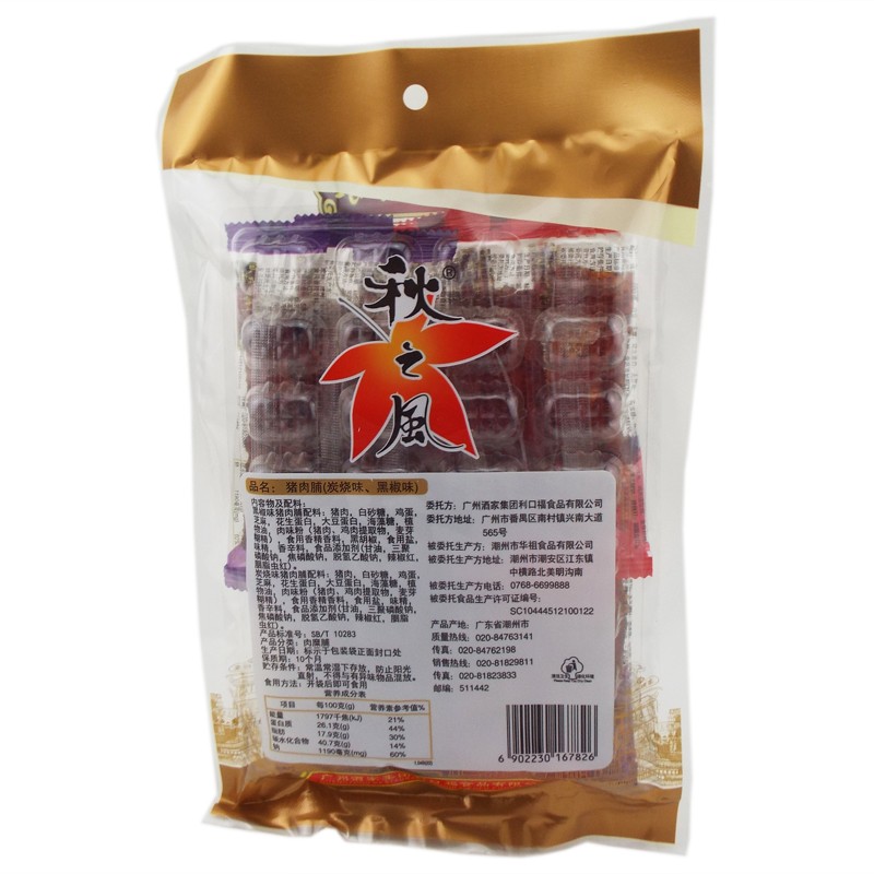 Guangzhou wine pork pork pork sauce taste charcoal black pepper pork dry and leisure snack packaging