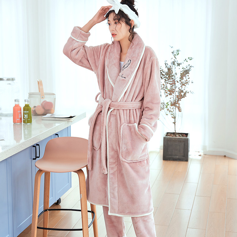 Sleepwear Women's Winter Long Version Coral Suede Pants Couple Sleeping Robes Thicken Plus Suede Male Winter Soft Casual Suit Bathrobe