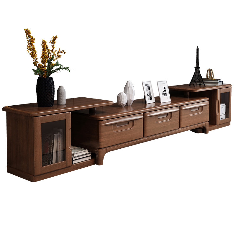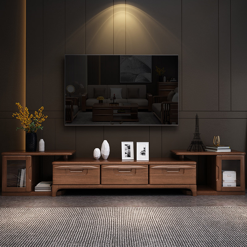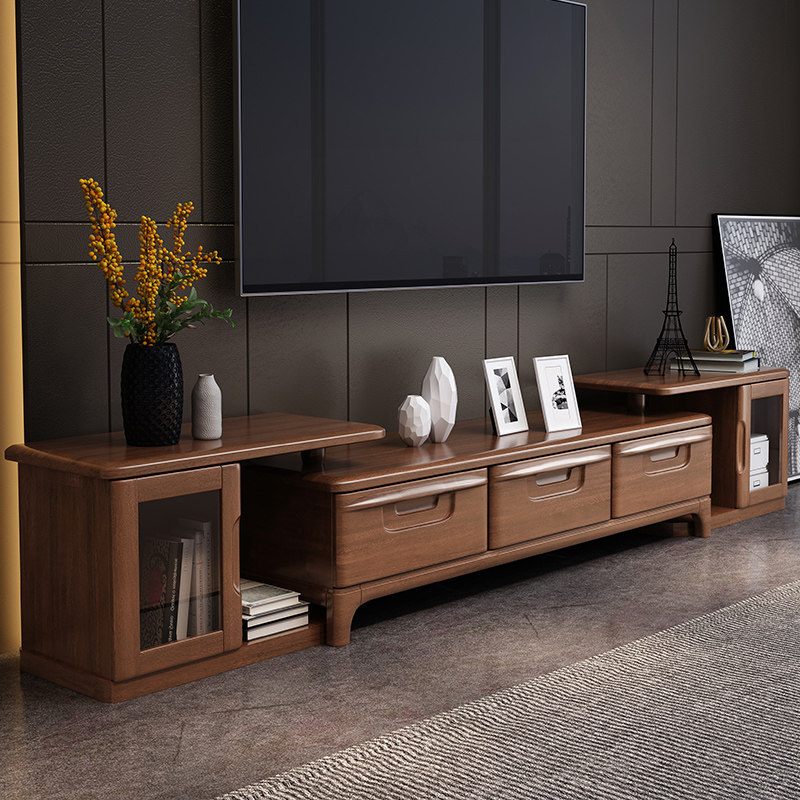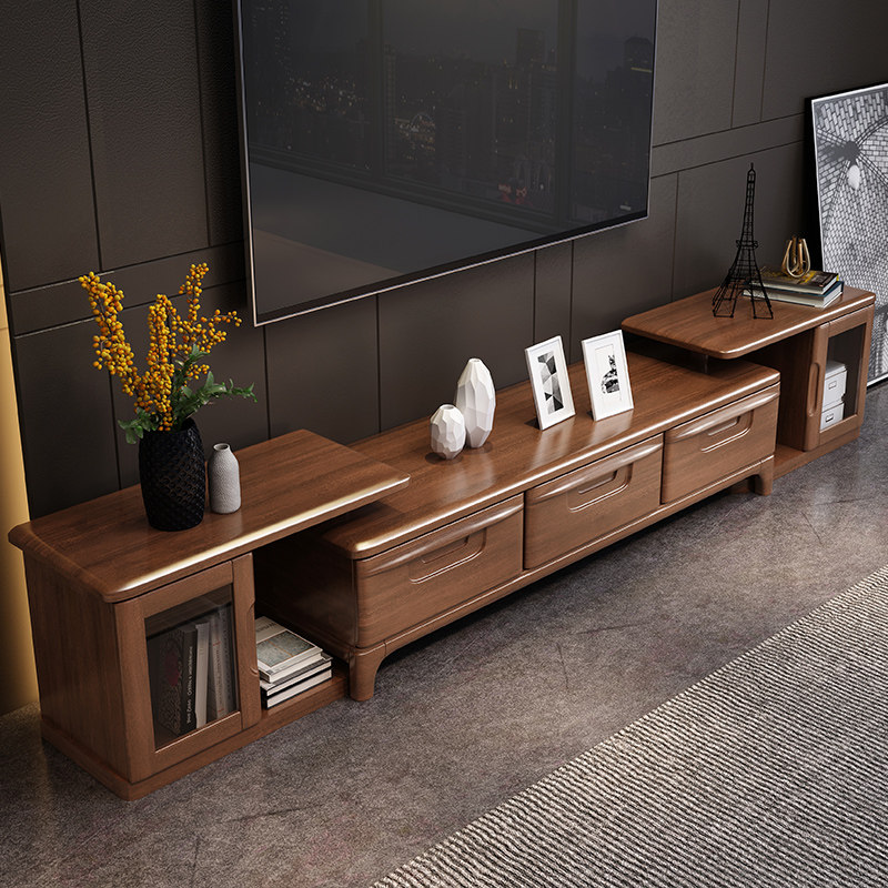 Walnut solid wood TV cabinet coffee table combination set modern minimalist living room locker telescopic TV cabinet