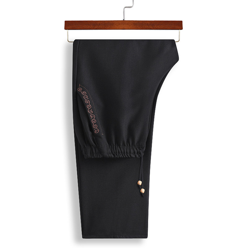 2022 middle aged retro casual pants autumn winter plus suede long pants grandpa tight waist Chinese wind Down clothing men's pants