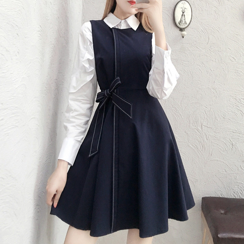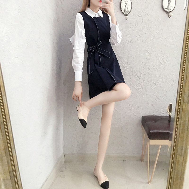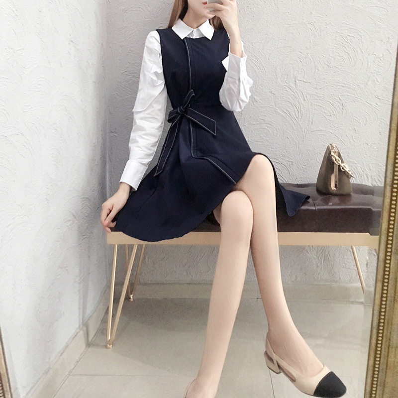 Small suit early spring dress 2022 new temperament white shirt repair tall two long sleeve skirts