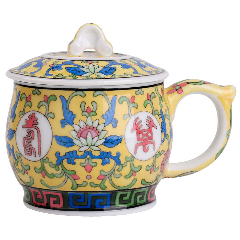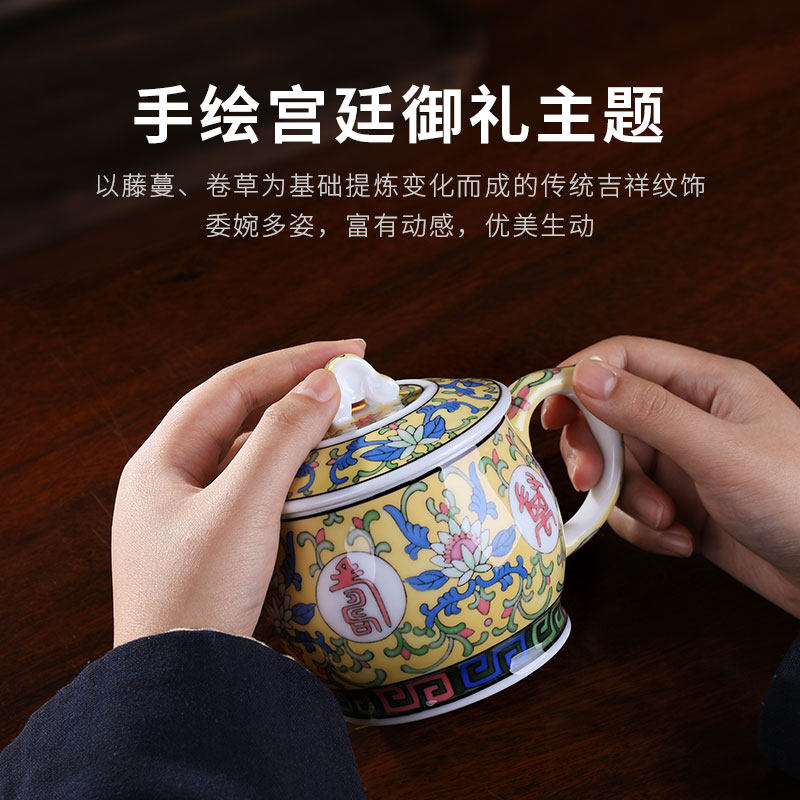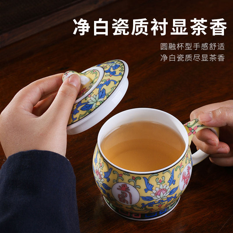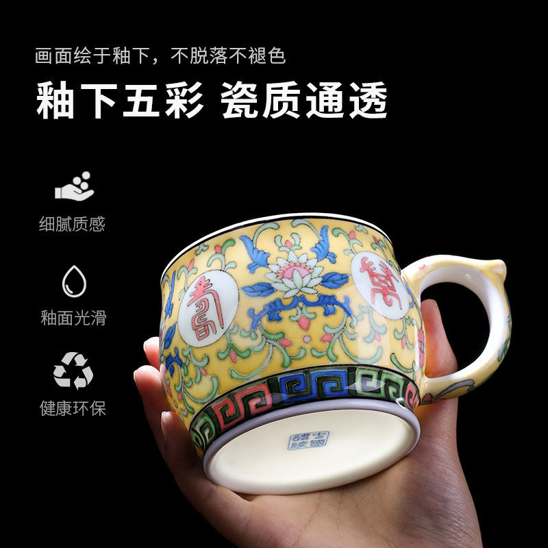 Liling porcelain mug with lid glazed down 5-color hand-painted Mao Porcelain Craft Ceramics Home Tea Cup Office Water Cup