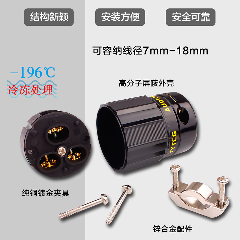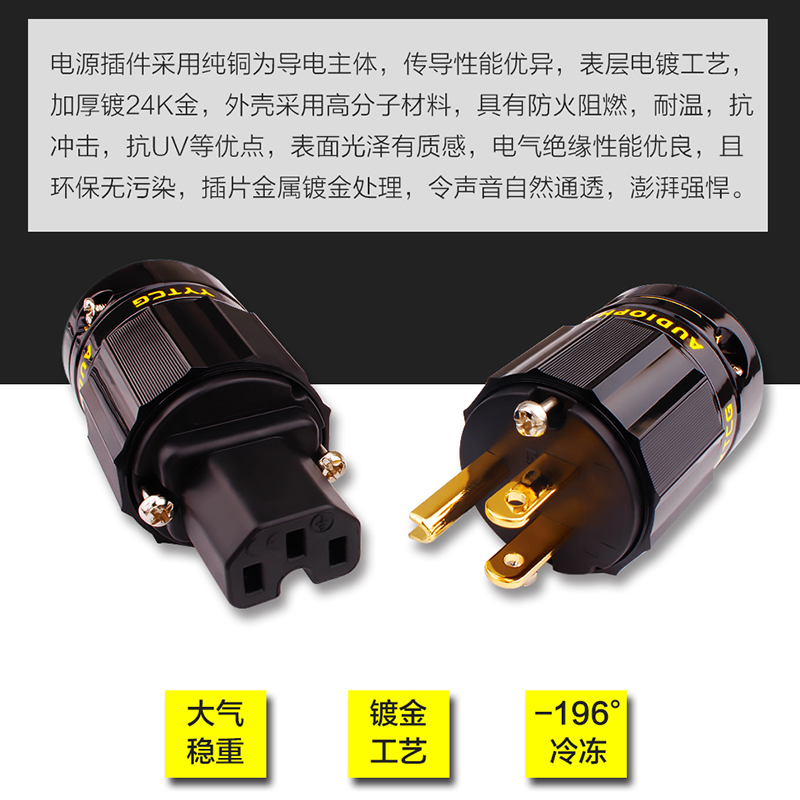 Fever American power cord plug tail plug 4N pure copper gilded American socket sound CD machine power amplifier accessories
