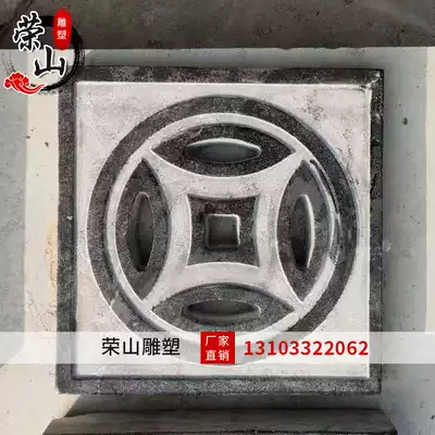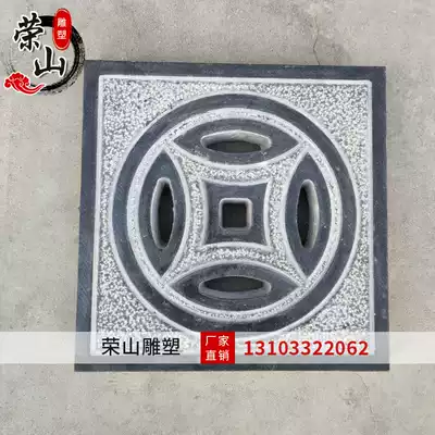 Stone carving blue stone water grate floor drain antique copper coin carving ancient money relief Villa household sewer floor decoration