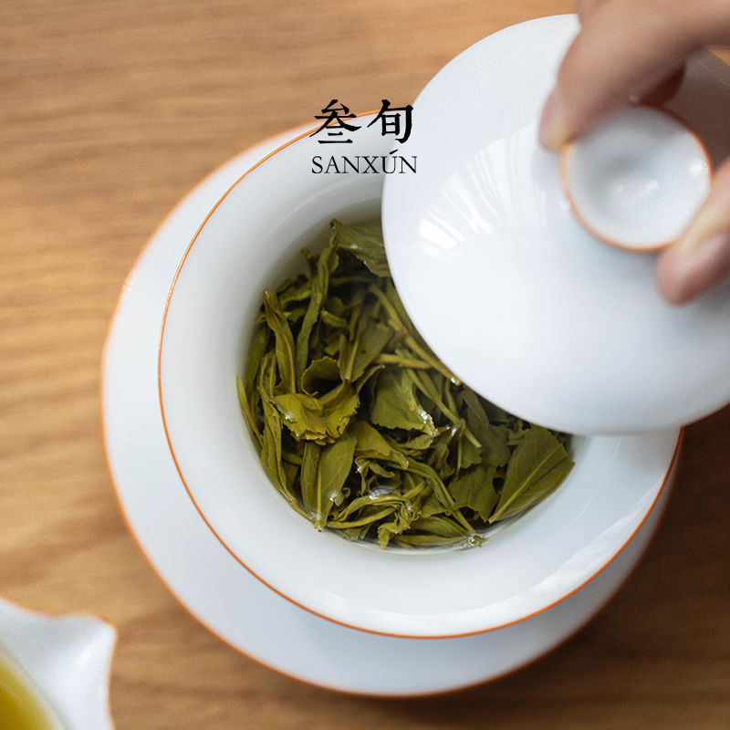 Sweet white porcelain cover bowl Light gold tea cup Ceramic Gongfu tea set Household anti-hot hand-made San Cai bowl
