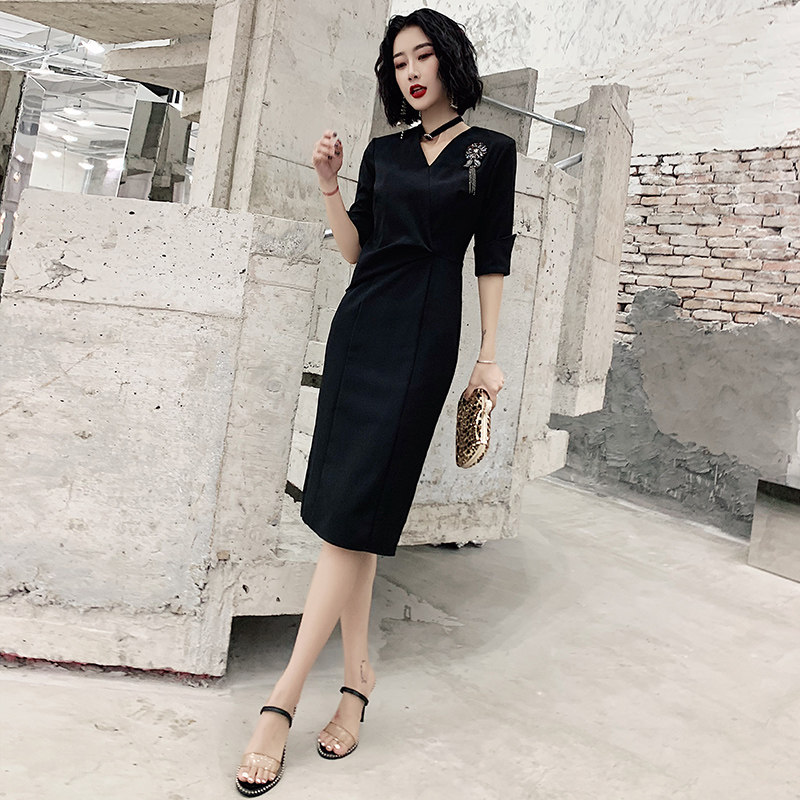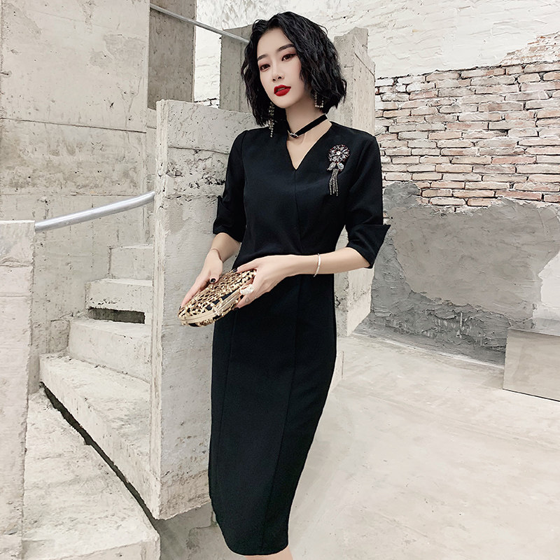 High-end banquet evening gown dress 2022 new qi and light lavish little crowdsourced black noble foreign dress can normally be worn