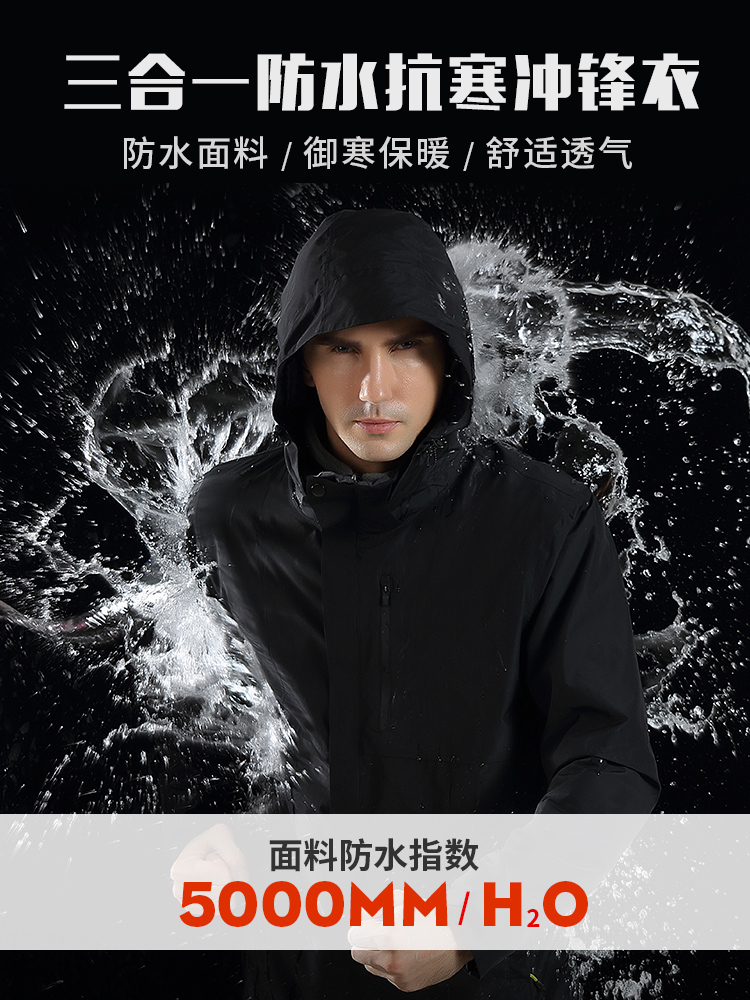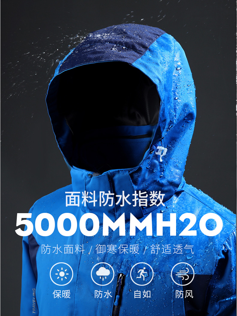 Outdoor jacket men's trendy brand three-in-one detachable two-piece suit autumn and winter plus velvet thick custom mountaineering suit