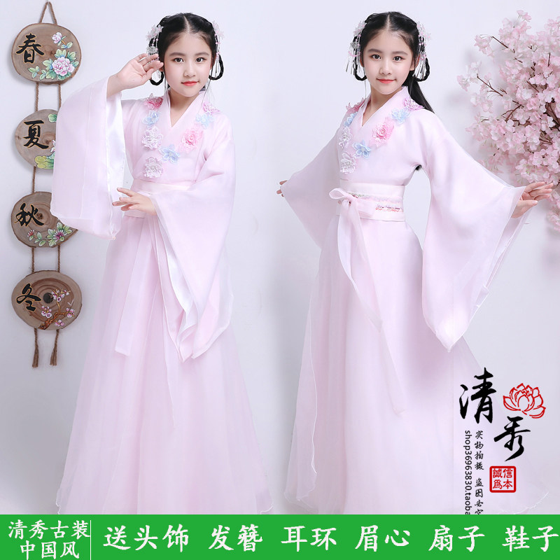 Children's ancient Costume Cherry Blossom Princess Little Girl's Skirt Skirt Fluffodie Lady Spring Autumn China Wind Superfairy Tales of Wonder Woman's Handmaid's Performance