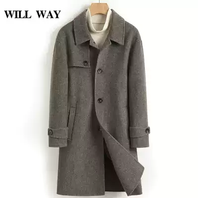 Broken code processing business leisure lapel double-sided cashmere coat men long wool coat fashion trench coat