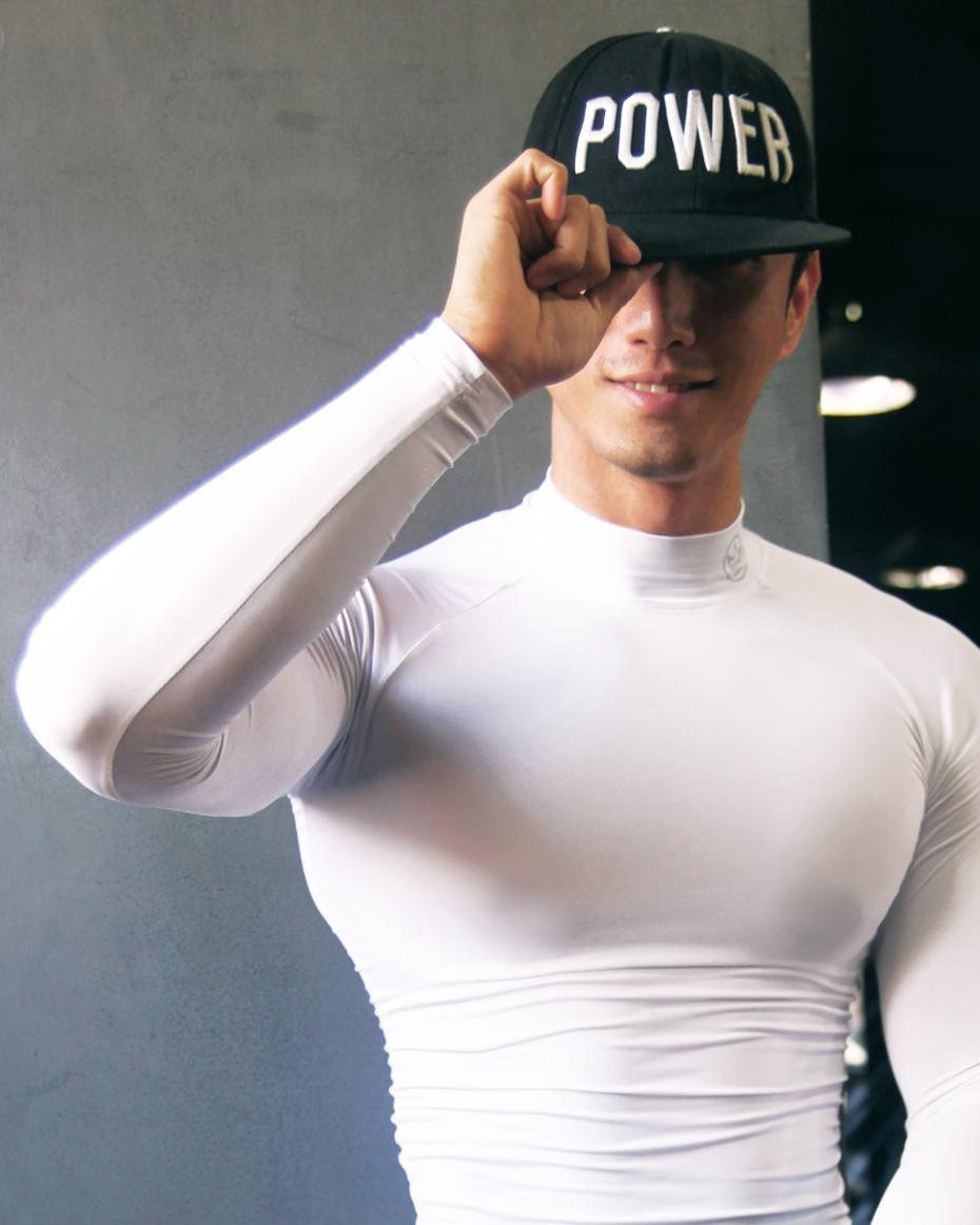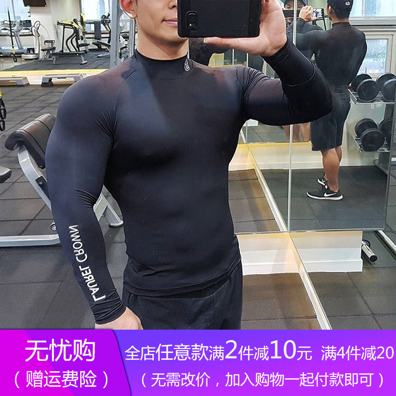 Muscle Sibling Tight Fit Man Long Sleeve Fitness T-shirt Sport High Collar Basketball Captain Running Training Quick Dry Clothes
