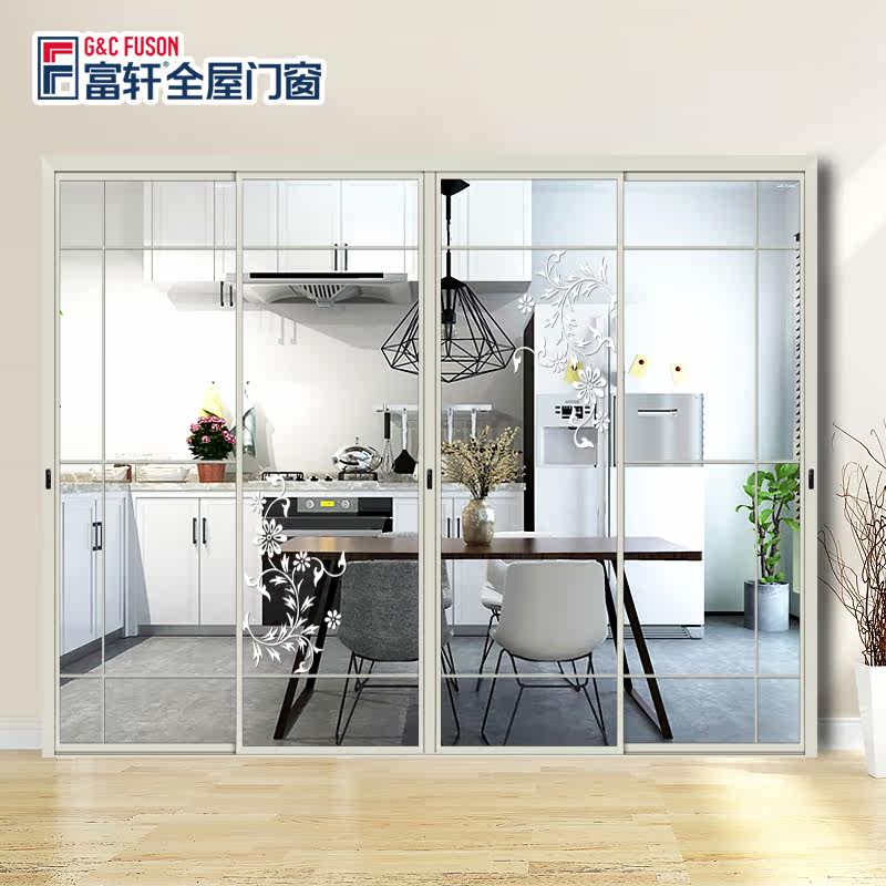 Fuxuan Doors And Windows Mediterranean Panoramic Ramen Broken Bridge Aluminum Alloy Heavy Sliding Doors Soundproofing Silent Kitchen Moving Doors