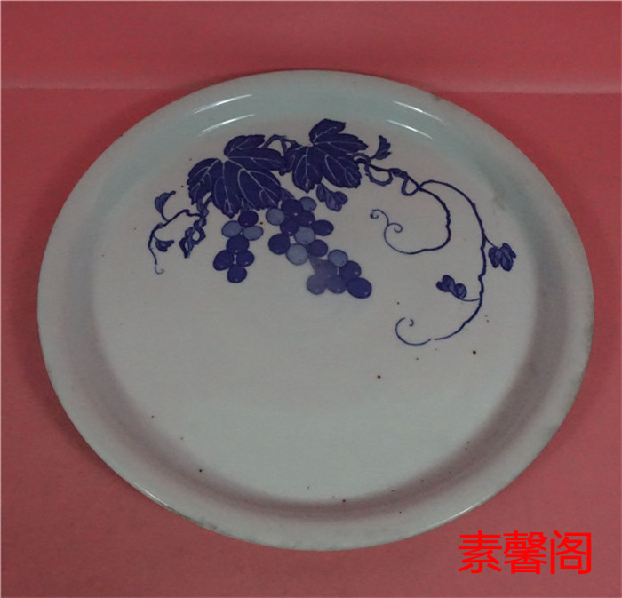 Special treatment 1990s blue and white wisteria grapes Large tea tray diameter 28 cm with black spots, smoke color, etc Non-returnable