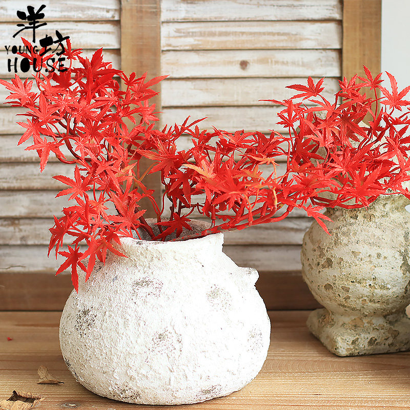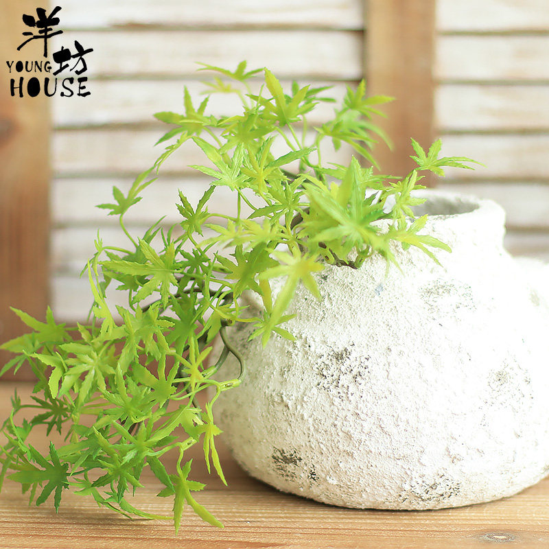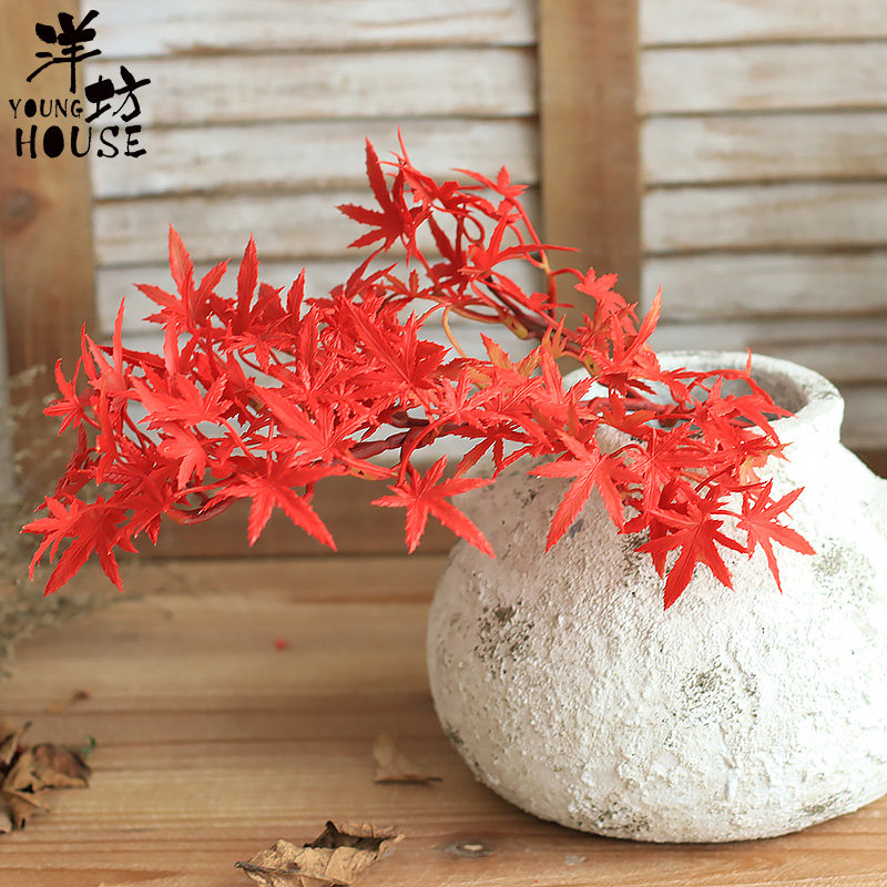 Yangfang Emulation Red Maple Leaf Fake Flowers Green Planting Banyan Leaves Decorative Dry Branches Plastic Flower Shop Display Building props