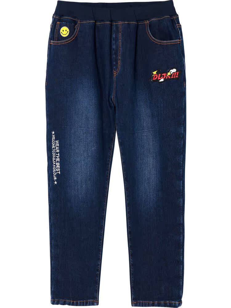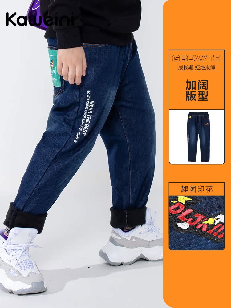 Fat children plus velvet pants boys autumn and winter big children plus fat plus size loose thick warm boy jeans trousers