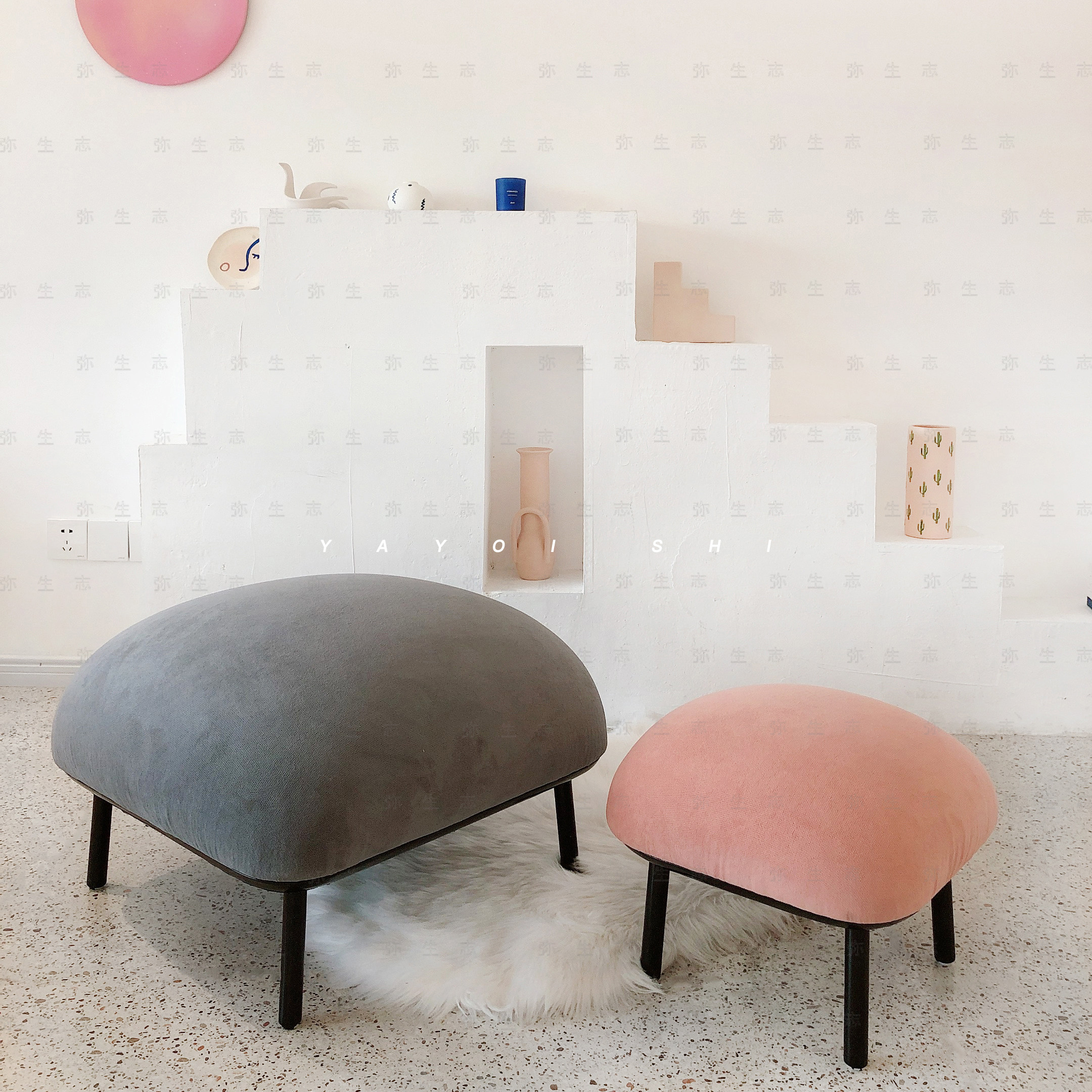 Mass original design Honey Peach Stool Goose Warm Stone Bench Small Family Changing Shoes Stool Pink Children Short Stool Sofa Round Stool